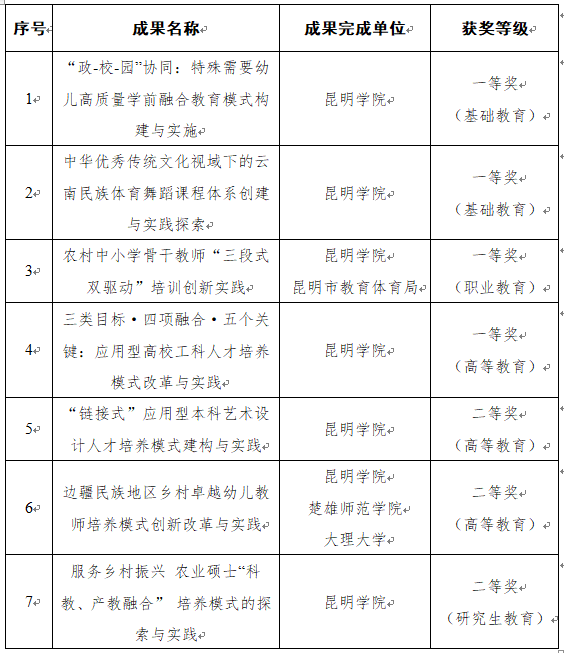 近日,云南省教育厅、云南省人力资源和社会保障厅正式下发了《云南省教育厅 云南省人力资源和社会保障厅关于表彰云南省教学成果奖的决定》(云教发〔2023〕13号),beat365官网作为第一完成单位获7项云南省教学成果奖,其中一等奖4项,二等奖3项,获奖项目数量及等级取得突破。