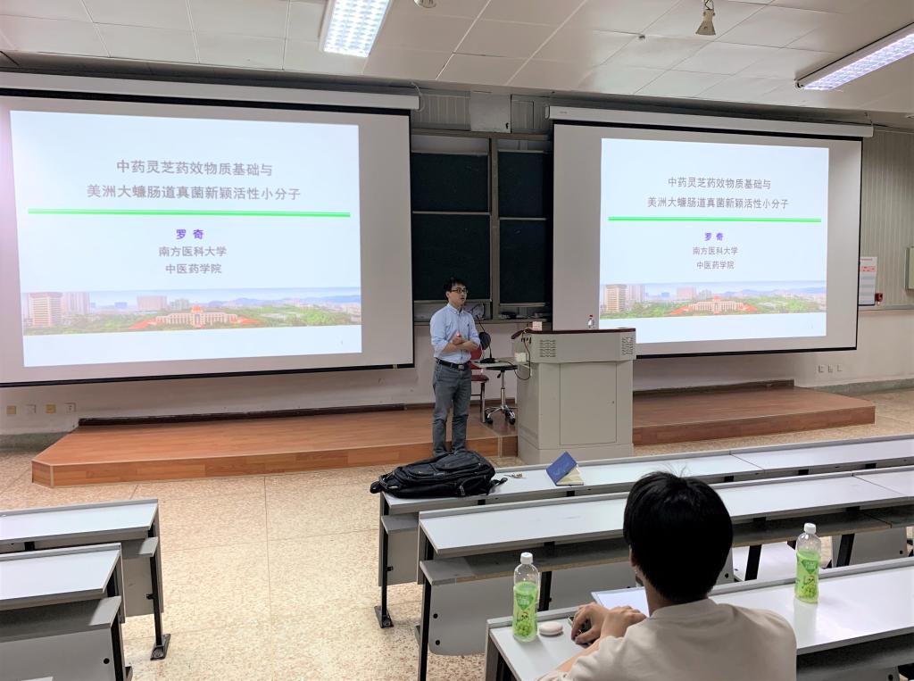 4月18日下午,南方医科大学中医药学院罗奇博士应邀到医学院作题为《中药灵芝药效物质基础与美洲大蠊肠道真菌新颖活性小分子》的学术报告。罗奇博士以屠呦呦发现青蒿素为切入点,向药学专业的同学们介绍了自己在天然药物化学领域的科研工作。