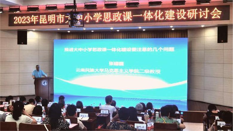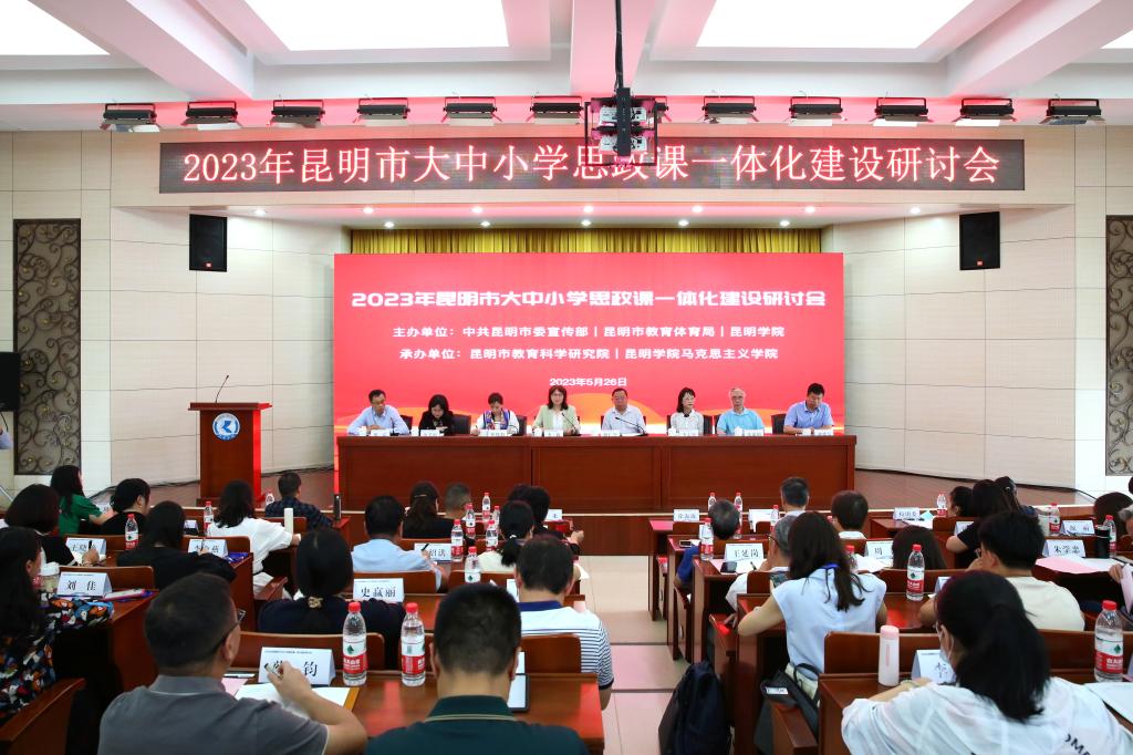 5月26日,中共昆明市委宣传部、昆明市教育体育局和beat365英国官方网站共同举办的“2023年昆明市大中小学思政课一体化建设研讨会”在校召开。研讨会由昆明市教育科学研究院和beat365英国官方网站马克思主义学院承办。
