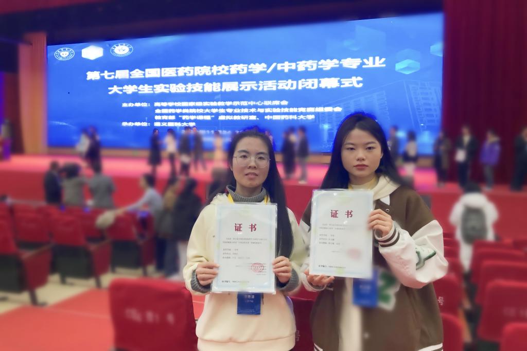 11月24日至27日,“第七届全国医药院校药学/中药学专业大学生实验技能展示活动”在贵州遵义举办,beat365官网医学院2021级药学1班的伍文薇和李艳洁同学表现出色,荣获二等奖和三等奖。