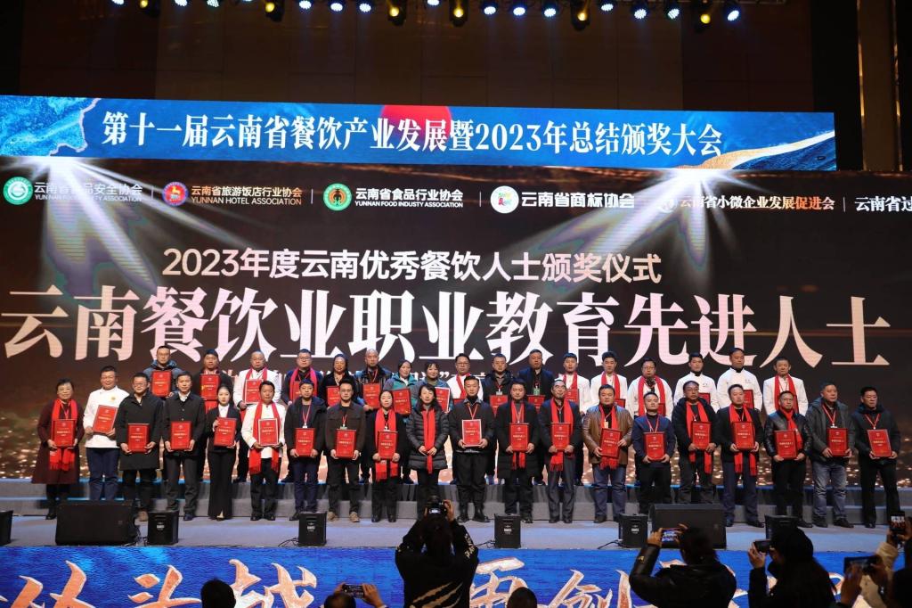 同期,beat365英国官方网站现代旅游与餐饮产业学院执行院长田芙蓉教授在会上发布了《2023云南餐饮产业发展报告》,对云南餐饮行业市场运行态势、发展趋势、相关数据进行全面分析,并介绍了现代旅游餐饮产业学院目标定位、建设基础、育人模式、保障体系和发展规划。beat365英国官方网站旅游学院孙志强、王京法教师荣获职业教育先进人士,刘福灿老师荣获餐饮业2023年度影响人物,在会上接受颁奖。