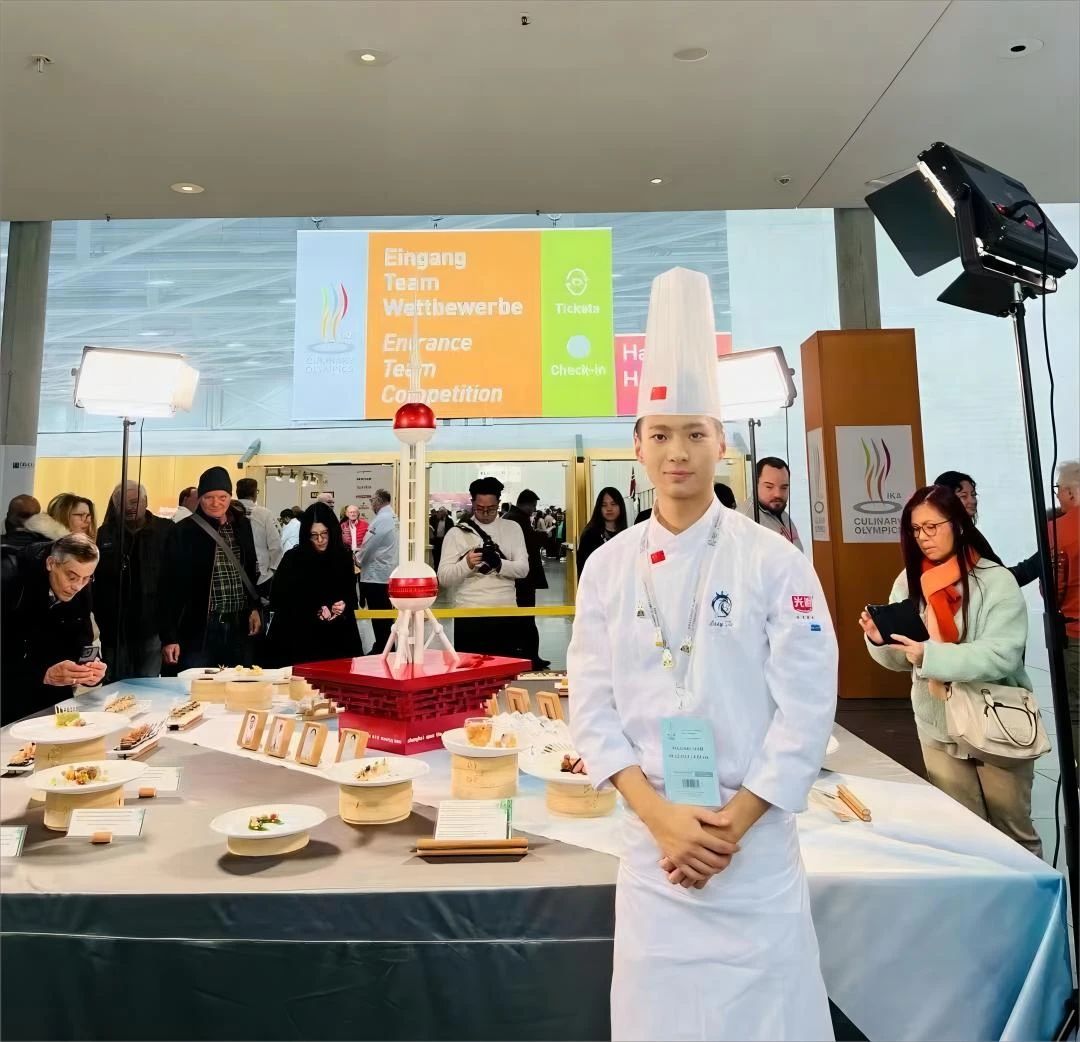近日,2024国际奥林匹克烹饪比赛(IKA)在德国举办,beat365英国官方网站旅游学院学生铁光磊所在参赛队——中国加冠-薄荷星厨团队制作完成的冷展台烹饪艺术作品,以国际化的呈现方式,用中国食材、中国味道、中国文化征服了大赛评委,勇夺桂冠。