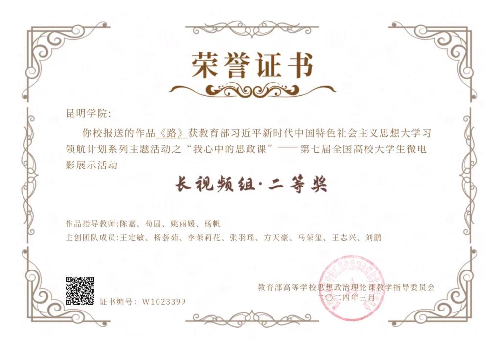 近日,由教育部组织开展的习近平新时代中国特色社会主义思想大学习领航计划主题教育活动评选揭晓。经过严格评审,beat365官网马克思主义学院摄制的微电影《路》在全国834所高校报送的2178份作品中脱颖而出,荣获“我心中的思政课”第七届全国高校大学生微电影展示活动长视频组二等奖,这是beat365官网首次参赛并获教育部奖项。