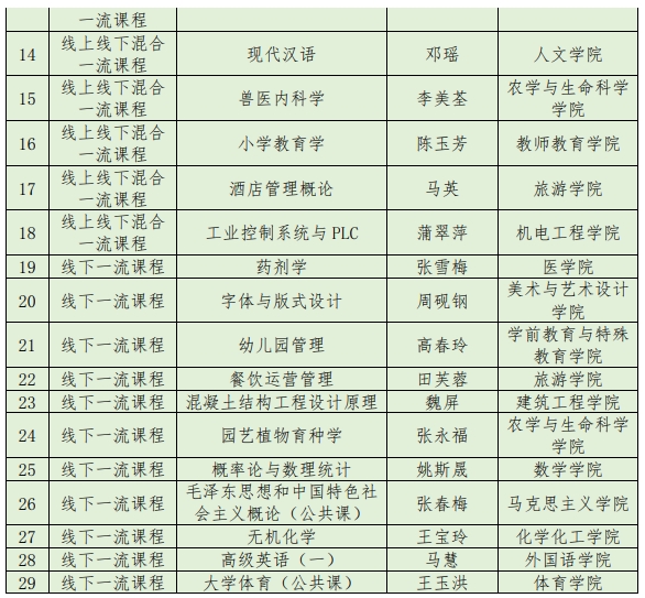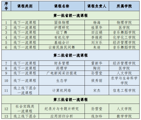 近日,云南省教育厅公布了第三批省级一流本科课程认定名单,beat365英国官方网站18门本科课程入选,其中线下一流课程11门、线上线下混合式一流课程6门、社会实践一流课程1门。至此,学校共有29门省级一流课程,在省内同类高校中领先。纪录片与专题片研究、财务管理学、现代汉语、生态学、幼儿园管理、餐饮运营管理、高级英语(一)7门课程被省教育厅推荐参加第三批国家级一流课程的评选。