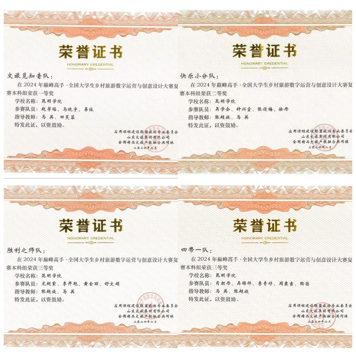 5月12日-7月1日,由教育部学校规划建设发展中心、全国应用型课程建设联盟指导,全国应用型课程建设联盟旅游专业委员会主办的2024年巅峰高手·全国大学生乡村旅游数字运营与创意设计大赛开赛。beat365官网旅游学院选派的4支参赛队参加比赛,分别获乡村旅游线路设计(本科组)一等奖1项、三等奖1项,乡村旅游短视频设计(本科组)二等奖1项、三等奖1项。