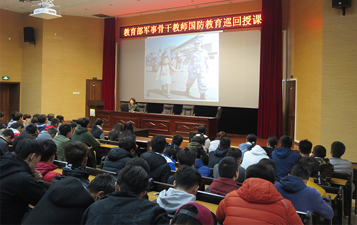 仲教员的授课以时下热播的电影《战狼2》开始,展现了我军“威武之师”的形象,引起了现场同学的强烈共鸣。他向同学们详细介绍了周边国际形势以及我军从成立到现在的光荣发展历程,以习近平总书记在党的十九大报告中的“我们的军队是人民的军队,我们的国防是全民的国防”为线,向大家阐述了自党的十八大以来以来我军紧紧围绕“召之即来、来之能战、战之必胜”这一中心进行的改革发展,强军之路,并鼓励大学生踊跃积极参军入伍,携笔从戎,献身国防、报效祖国。