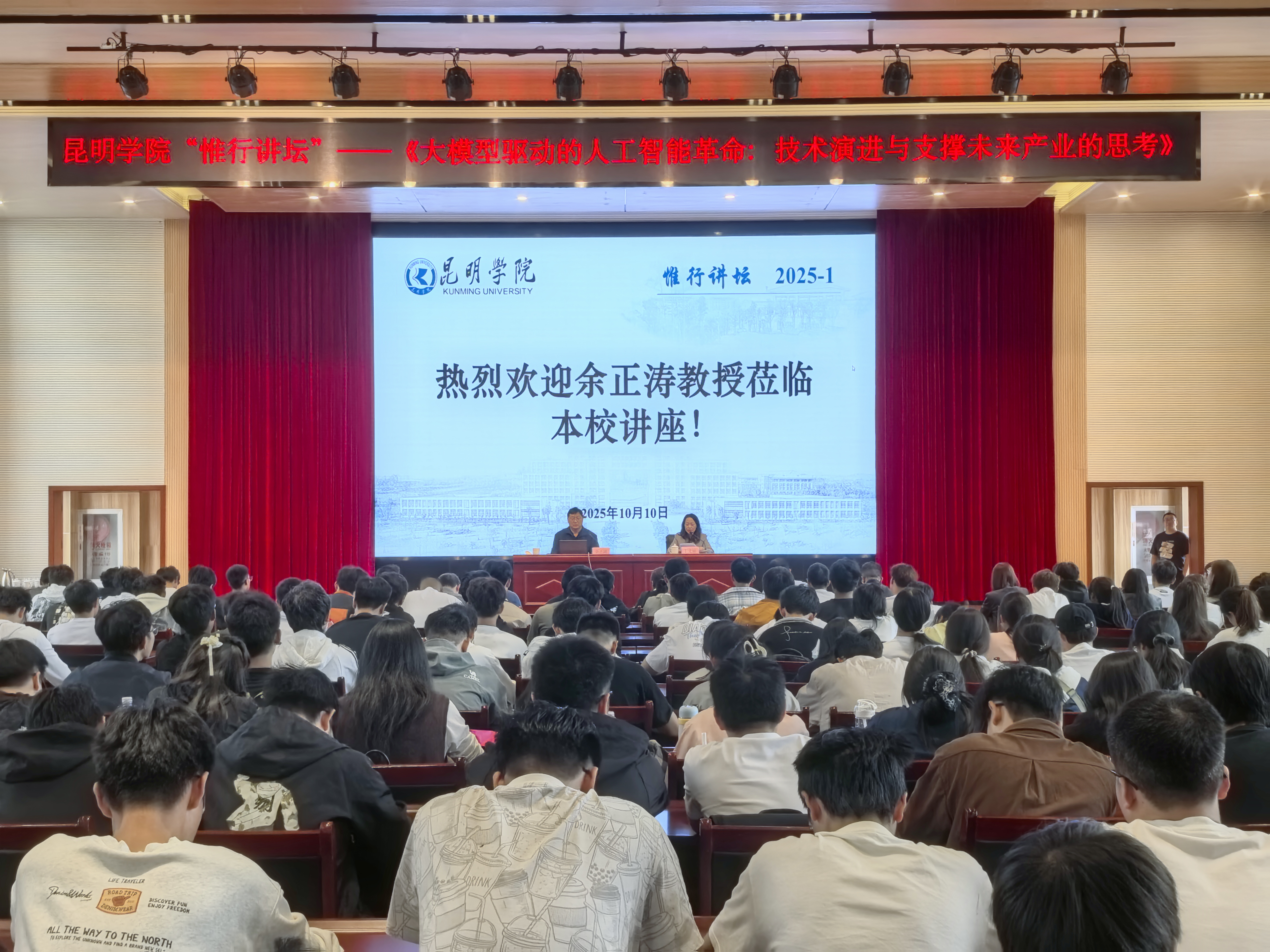 10月10日下午,beat365英国官方网站“惟行讲坛”在博学报告厅举行,讲座由云南省人工智能重点实验室主任余正涛教授主讲。学校党委副书记、校长丁文丽教授主持讲座,科技处、经济管理学院、信息工程学院、建筑工程学院、机电工程学院等280余名师生参加。