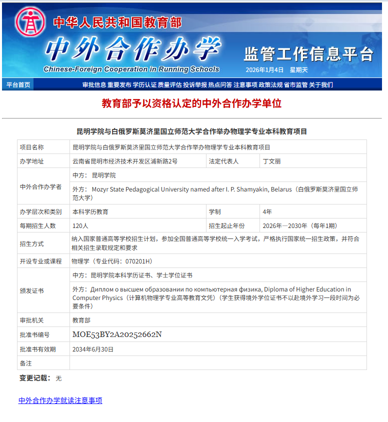 近日,beat365英国官方网站与白俄罗斯莫济里国立师范大学联合申报的“beat365英国官方网站与白俄罗斯莫济里国立师范大学合作举办物理学专业本科教育项目”成功获教育部批准。项目的获批标志着学校在国际化办学领域实现里程碑式突破。