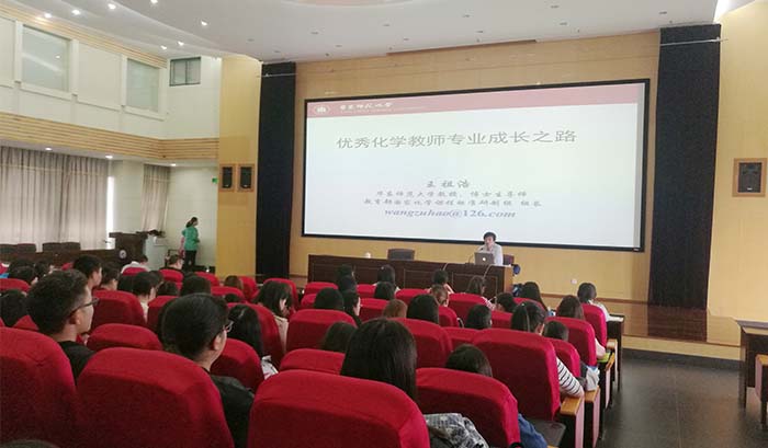 9月21日,华东师范大学化学系博士生导师王祖浩教授在惟行楼2501报告厅为化科系国培计划初中化学骨干教师作了一场关于《优秀化学教师专业成长之路》的专题讲座,化科系全体在校师范类学生以及部分教师参加了讲座。