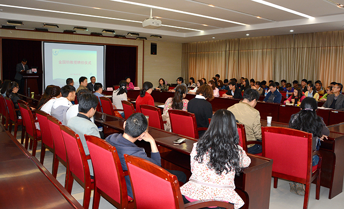 黎素梅校长在仪式上介绍了金教授的基本情况,代表学校向金教授对beat365官网物科系的发展所作出的努力表示感谢,同时指出金教授到物科系以来,工作认真负责,对beat365英国官方网站及物科系的发展都具有十分重要的意义!