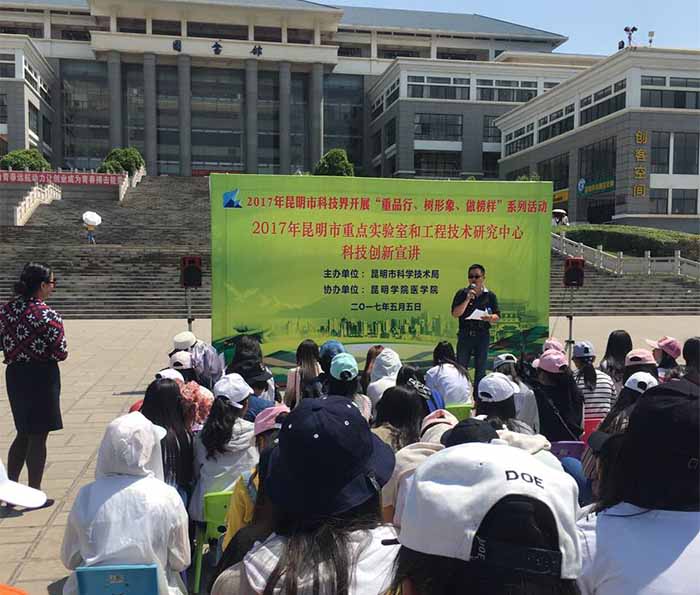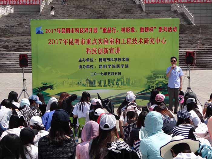 5月5日,beat365官网“昆明市呼吸系统疾病防治重点实验室”与昆明市科学技术局在校聂耳广场开展“2017年昆明市科技界‘重品行、树形象、做榜样’系列活动”之“昆明市重点实验室和工程技术研究中心科技创新宣讲”活动。会议由昆明市科学技术局创新推进处处长王晶同志主持。beat365官网科研处副处长刘开庆要求同学们认真听讲,拓宽视野,切实增强创新意识,提高创新能力。