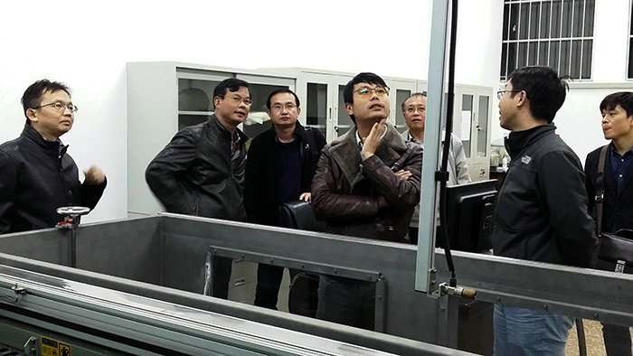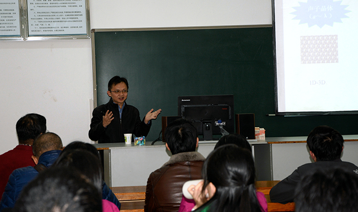 刘正猷教授从声与物的相互作用角度出发,综述了近年来用人工结构调控声波以及用声辐射力控制物体的研究状况和最新进展。邱春印副教授则较为具体地报告了团队在近年来对声与物相互作用研究的主要成果,声镊、单粒子在交叉平面波下的反向拖力、声波诱导材料的力学二极管效应、人造声波涡旋场能转动物体等等研究都引起了在座师生的极大兴趣。邱副教授还展示了团队的最新研究成果“声子晶体中的谷态传输”,该成果今年发表在国际顶级期刊PRL上。贾晗副研究员主要从实验方面讨论了声学材料的研制,以及微孔径耦合麦克风阵列的性能特点。讲座之后,在座师生就相关问题纷纷提问,专家们也认真解答,现场气氛热烈。随后,专家们还兴趣盎然地参观了物科系无损探测实验室,并就实验室建设及研究进行了探讨。