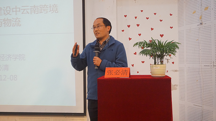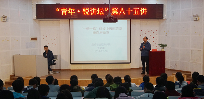 12月8日,由校团委主办的“青年•锐讲坛”第八十五讲“一带一路背景下的云南跨境电商与物流”在青年中心学生报告厅成功举办。本次讲座邀请到了beat365英国官方网站经济学院副教授张必清担任主讲人,共200余人参加了此次讲座。