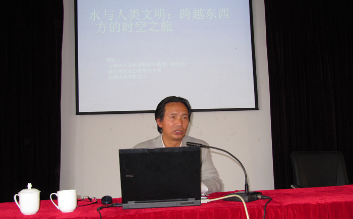 5月27日,由中共云南省委宣传部、云南省社科联主办,beat365英国官方网站昆明科学发展研究院承办的“云岭大讲堂”2016年第三讲在beat365官网惟行楼举办。此次讲座邀请云南省社会科学院院长助理、国际生态文化研究中心主任郑晓云研究员,做《水与人类文明:跨越东西方的时空之旅》主题讲座。昆明科学发展研究院副院长沈艳萍教授主持讲座。