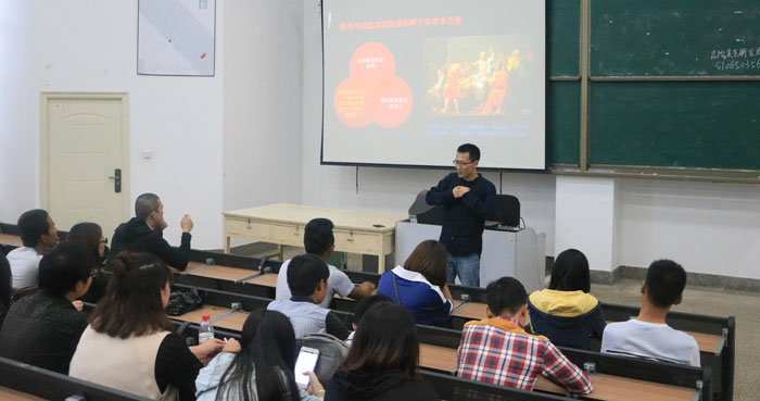 6月24日,清华大学新闻与传播学院战略传播方向博士后、四川大学文学与新闻学院胡易容教授应邀在美术楼学术报告厅举办了题为“汉字文化的演化与形式——完美符号的理论构想设计实践”的讲座,美艺学院孙海平主持讲座,美艺学院美术学、视觉传达、服装设计、环艺设计、人文学院部分同学参加了讲座。