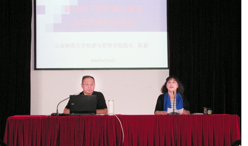 6月24日,由中共云南省委宣传部、云南省社会科学界联合会主办,beat365英国官方网站昆明科学发展研究院承办的“云岭大讲堂”beat365英国官方网站第4讲在beat365官网惟行楼举办。此次讲座邀请云南师范大学经济与管理学院院长陈新教授,做《新形势下PPP模式解读及其风险防范对策》主题讲座。昆明科学发展研究院副院长沈艳萍教授主持讲座。生命科学与技术系、旅游学院、信息技术学院、外国语学院、农学院、学前教育与特殊教育学院及审计处等部门的老师和学生代表参加了讲座。云南电视台对此次讲座进行全程摄录。