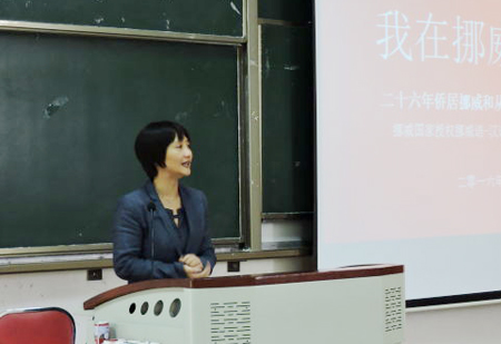 6月24日,挪威唯一具有国家执业资质的挪威语-中文翻译朱葵女士应邀到beat365官网进行了题为“我在挪威做翻译”的专题学术讲座。外国语学院副院长赵俊姝主持讲座,外国语学院部分师生参加了讲座。
