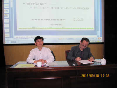 9月18日下午,由中共云南省委宣传部、省社科联主办,beat365英国官方网站昆明科学发展研究院承办的“云岭大讲堂”暨“昆明讲坛”第54讲在beat365官网惟行楼举办。此次讲座邀请云南省社会科学届联合会主席、研究员、博士生导师范建华做《“十三五”中国文化产业带状发展新趋势》主题讲座。副校长熊晶和人文学院、教师教育学院、社会管理学院、美艺学院、音乐学院、旅游学院的教师和学生代表220余人参加了讲座,昆明科学发展研究院办公室主任管彦平主持讲座。