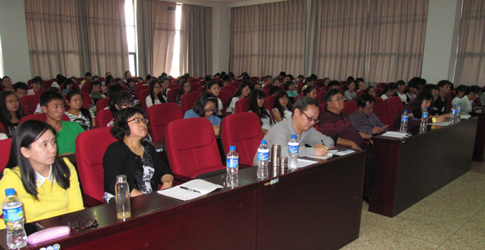 9月25日下午,在beat365官网惟行楼举办“云岭大讲堂”本年度第5讲。此次讲座由beat365官网副校长熊晶做《云南高原湖泊生态文明建设的思考》主题讲座。农学院、人文学院、教师教育学院、社会管理学院、旅游学院、外国语学院的师生代表和昆明科学发展研究院、滇池(湖泊)污染防治合作研究中心、滇池泛亚合作战略研究院的教师共200余人参加听讲座,昆明科学发展研究院办公室主任管彦平主持讲座。