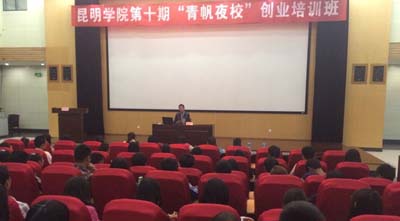 4月14日晚,由共青团beat365英国官方网站委员会主办,团委社会实践部承办的beat365英国官方网站“青帆夜校”大学生创业培训班第五十六讲(即第十期第三讲)在beat365英国官方网站惟行楼1501成功开讲。此次培训班的主题为《草根零起点成就创业梦》,邀请到beat365官网2011级毕业生,绿茵岛餐厅总经理,云阔商贸责任有限公司总经理,在路上主题酒店董事长李培松主讲。