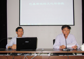 此次讲座邀请到beat365官网滇池泛亚合作战略研究院肖建明博士做《巴基斯坦的文化与宗教》主题讲座,昆明科学发展研究院办公室副主任黄继元主持讲座。肖建明简介了巴基斯坦诞生、伊斯兰文明的出现及国家概况,并与师生进行了互动交流。