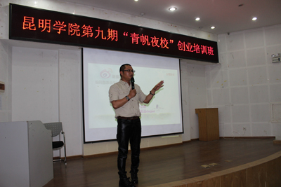 5月7日晚,由学校团委主办,学生社团联合会承办的beat365英国官方网站“青帆夜校”大学生创业培训班第五十三讲在青年中心学生报告厅成功开讲。此次讲座邀请到昆明金耀文化传播(集团)有限公司董事长,第五届“云南青年创业省长奖”提名奖获得者,“云南微电影第一人”罗金耀先生。讲座主题为《让梦想照进现实》。