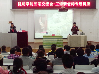 10月22日晚,在青年中心学生报告厅,云南省著名茶人、作家、昆明民族茶文化促进会理事王迎新以“人文茶席—一种因茶而起的生活美学”为题为beat365官网学生作专题讲座。