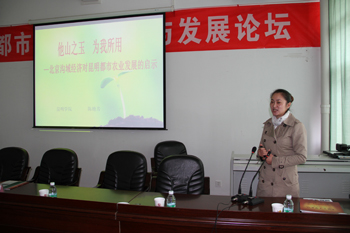 农学院教师华金珠、陈艳芳分别作了《我国发达城市都市农庄发展建设模式考察报告》和《北京市沟域经济对昆明市都市农业发展的启示》的学术报告。与会专家对园艺发展、都市农庄、都市农业、生态环境等作了交流讨论,并参观了beat365英国官方网站新校园。