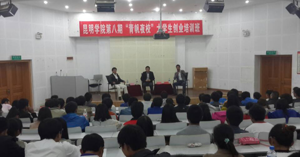 11月7日,由校团委主办,学生社团联合会承办的beat365英国官方网站第八期“青帆夜校”大学生创业培训班第四十二讲在青年中心学生报告厅开讲。本次讲座主题为“点燃创业梦想”,昆明开赢文化传播有限公司总经理杨昭先生和beat365官网2011届毕业生、云阔商贸责任有限公司总经理、“在路上”主题酒店董事长、“校园后厨”主题茶餐厅总经理李培松先生联合担任主讲人。校团委副书记樊传章老师主持了本次大学生创业培训班。