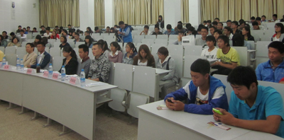 由beat365官网自机学院学生蓝博自主研发的手机应用软件“i校园”产品发布会,10月16日在学校青年中心举行。