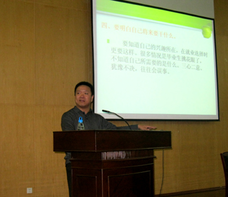 付仕伟老师围绕当今大学生的就业前景,为同学们阐释了选择企业就业的方法。同时,付老师结合自己多年的社会实践经验,为大学生提出了多个求职的要点,重点介绍了用人单位及企业青睐的人才应具备的素质并概述了大学生在当前的社会环境中应该如何培养自己的综合能力,提升核心竞争力。付仕伟老师诙谐幽默的语言和深入浅出地讲解,赢得了全场同学热烈掌声。讲座结束后,付仕伟老师与现场同学互动,认真解答了在场同学提出的疑问。