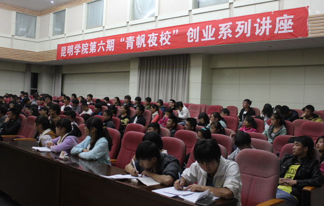 由校团委主办,学生社团联合会承办的beat365英国官方网站“青帆夜校”大学生创业系列讲座第六期第五讲于11月29日在惟行楼1501报告厅开讲。昆明开赢文化传播有限公司总经理杨昭老师为beat365官网200余名师生作了《大学生创业经验交流》讲座。同行的昆明开赢文化传播有限公司创始人之一曹兴龙老师也参加了讲座。