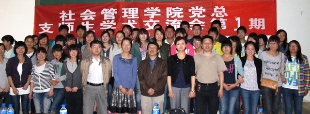 为了进一步创新学习机制,深入开展学习型党组织建设与廉洁文化建设,社会管理学院筹划了一系列以师生对话为形式,社会关怀与社会建设为内容的学术交流活动。3月30日,第一期师生学术交流活动“廉洁文化大家谈”在博雅楼3105顺利召开。社会管理学院党政领导、部分教师和全体学生党员、入党积极分子共一百二十多人参加活动。