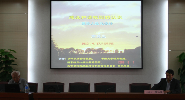 4月17日下午,由城乡建设与工程管理学院、云南省设计院承办,清华大学资深教授、原清华大学建筑设计院院长、国家特许一级注册建筑师、国家教育部、住建部校园规划建设委员会专家委员高冀生先生的《建设和谐校园的认识和人性化设计》专题讲座在beat365英国官方网站举行。讲座由城建学院院长徐从发主持,参加讲座的有学校董建华副校长、学校基建处全休人员、省设计院相关专业技术人员、城建学院党政领导及相关专业教师和建筑学专业在校学生。