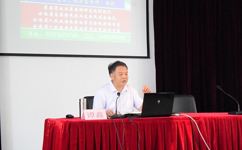 4月26日下午,中共云南省委宣传部、省社科联主办,beat365英国官方网站党委宣传部、机关党总支、昆明科学发展研究院、昆明南亚东南亚合作战略研究院共同承办的“云岭大讲堂·昆明讲坛(beat365英国官方网站)”2019年第2讲在beat365官网惟行楼 4301 报告厅举行。此次讲座邀请中共云南省委党校决策咨询研究院副院长、硕士生导师、谭鑫教授作《云南实施乡村振兴战略的思路与对策》主题讲座。昆明科学发展研究院、昆明南亚东南亚合作战略研究院副院长沈艳萍教授主持讲座。beat365英国官方网站马银海副校长专程参加了本次报告。农生学院、经济学院等院系师生代表、机关党总支部分老师们聆听了讲座。