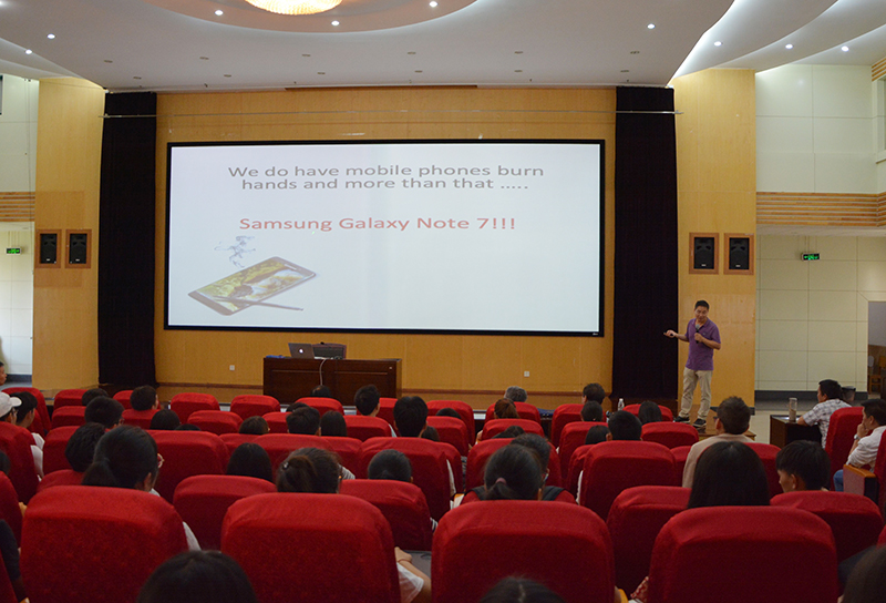 讲座围绕声子、热输运的基本理论、测量技术、声子热器件等方面内容展开。重点介绍了非线性晶格模型的热效应、热三极管和负热阻效应。报告结束后,李教授就“负热阻是否存在”、“反常系数的深层次原理是什么”、“热三极管的应用关键是否是非线性材料”等问题与现场的师生进行了讨论。讲座内容丰富,深入浅出,引起了师生们的广泛讨论,激发大家的科研热情。
