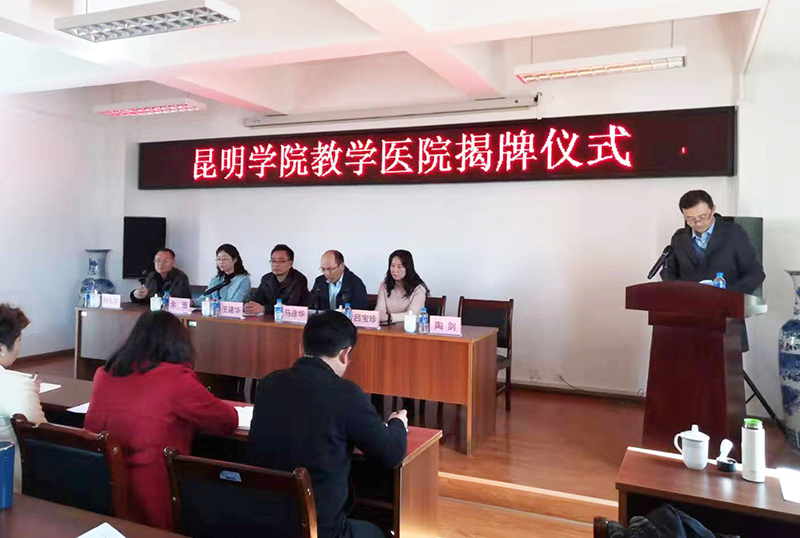 beat365英国官方网站医学院院长余珊宣读了云南省教育厅、云南省卫生健康委《关于公布高等学校新增教学医院的通知》,宣布昆明经开人民医院正式成为beat365英国官方网站教学医院。