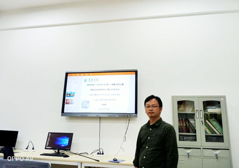 73日、710日,“人文学术沙龙”连续两周举行“西南边疆与历史文化研究中心”系列讲座。第一场讲座由熊开万博士主讲,题目为《礼化:地方精英与清朝改土归流后哀牢山区三属地的边疆治理》。第二场讲座由许振政博士主讲,题目为《云南边疆移民与侨乡社会的形成与演变——以盈江县昔马镇为例的研究》。两场讲座吸引了大批自愿前来的博士、教授以及硕士研究生,大家就两位博士的讲座内容提出了许多富有针对性与建设性的意见。