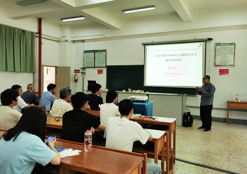 7月29日,南京大学物理学院教授、博导陈延彬应邀到beat365英国官方网站物理科学与技术学院作题为“二元拓扑量子材料MXn单晶的生长与输运性质研究”的学术报告。