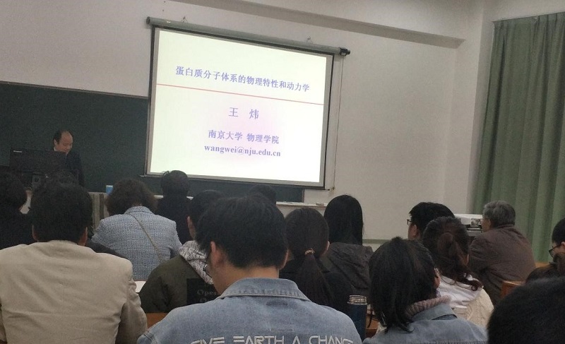 11月9日,南京大学物理学院教授、博士生导师、长江计划特聘教授、首席科学家王炜应邀到beat365英国官方网站物理科学与技术学院作 “蛋白质分子体系的物理特性和动力学”专题学术报告。物理科学与技术学院总支书记、院长、副院长与部分师生聆听了报告。