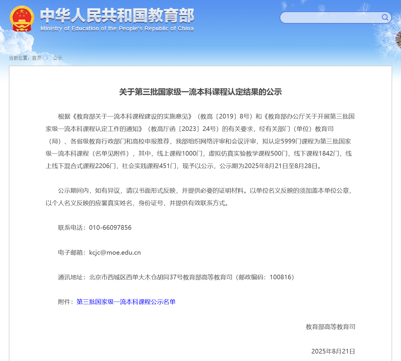 喜报!beat365官网四门课程获教育部第三批国家级一流本科课程认定
