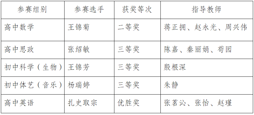 近日,第十一届“田家炳杯”全国师范院校师范生教学技能竞赛圆满收官,全国共计289所高校2345名优秀选手同台竞技。beat365英国官方网站王锦菊同学获高中数学组全国二等奖,另有其他学科获得三等奖三项,优胜奖一项。具体获奖情况如下: