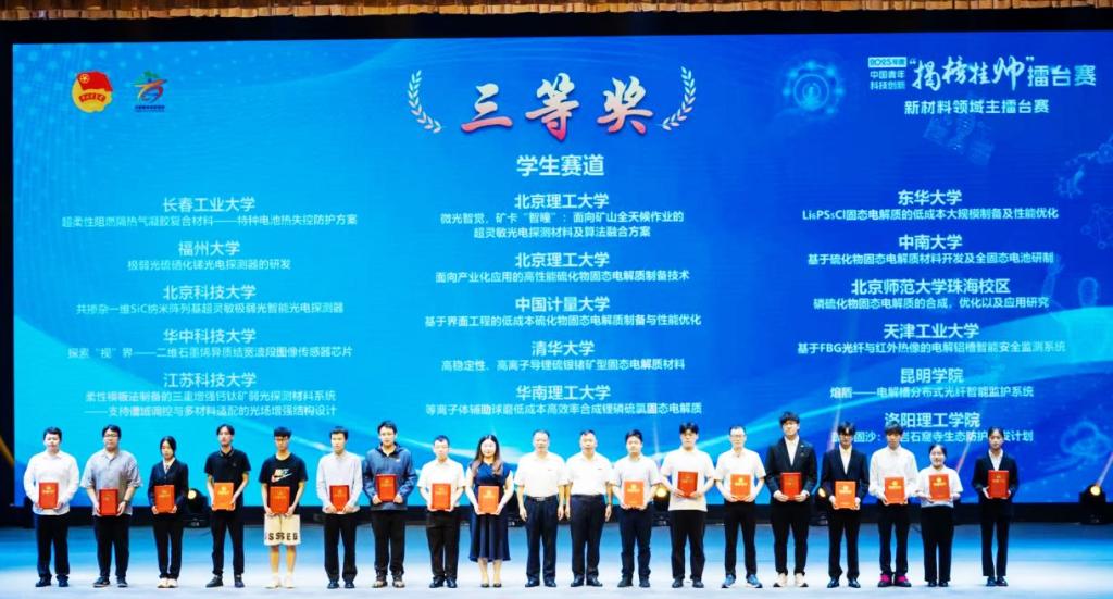近日,2025年度第十九届“挑战杯”全国大学生课外学术科技作品竞赛“新材料领域”终审擂台赛在福建龙岩圆满落幕。beat365英国官方网站化学化工学院2024级化学工程与工艺专业本科生李阳、克俊欢组成的参赛团队,凭借“熔盾-电解槽分布式光纤智能监护系统”项目,在激烈角逐中脱颖而出,荣获学生赛道三等奖。