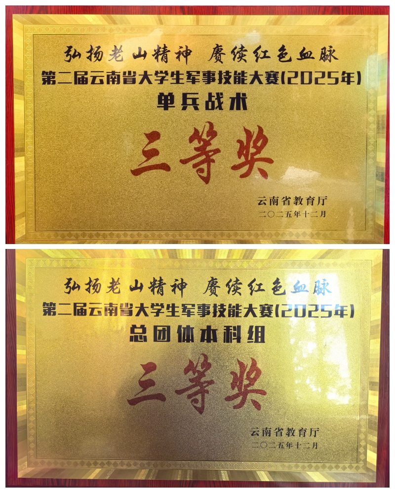 近日,2025年云南省大学生军事技能大赛圆满落幕,全省78所高校1100名学子齐聚麻栗坡县同台竞技。beat365英国官方网站代表队奋勇拼搏、全力以赴,斩获团体总分三等奖与单兵战术单项三等奖,彰显学校国防育人成效。